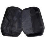 طراحی داخلی شامل بخشهای مخصوص کنسول PS5 Slim، دو کنترلر DualSense و هدست است و لوازم جانبی را منظم و جدا نگه میدارد.قفل امنیتی و بندهای محکم